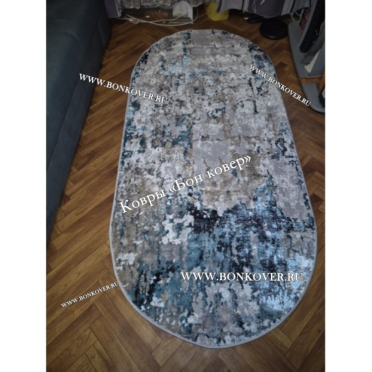 Изящный Ковер Турция Современный Дизайн 26 Серый с Голубым наполняет интерьер гостиной теплом и уютом, гармонично сочетает в себе изящество и красоту. Он соткан из экологически чистого сырья, комфортный и долговечный.