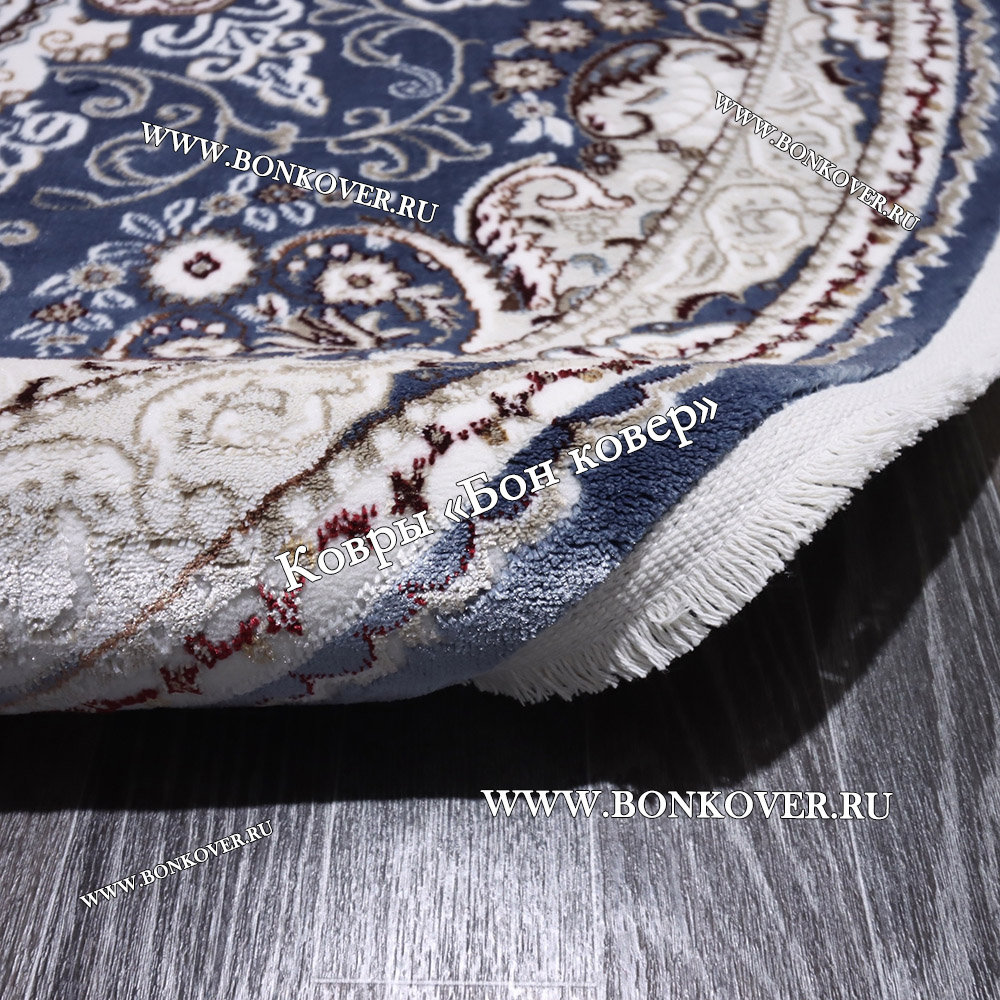 Шикарный Турецкий Ковер Медальон дизайн 87 Синий Овал наполняет интерьер помещения теплом и уютом, гармонично сочетает в себе изящество и стиль. Он соткан из современных материалов, прочный и долговечный.